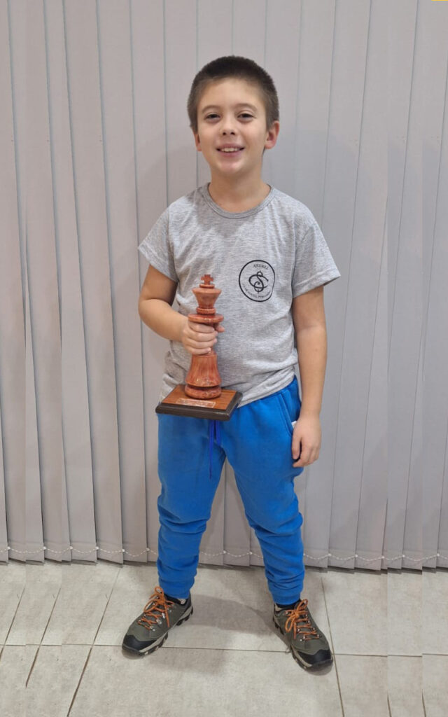 El joven, de tan solo 9 años y alumno de la Escuela Deportiva de Pergamino, ganó seis partidas y empató una, ratificando su gran arranque de año. De esta manera, volvió a imponerse en la categoría Sub 15, tal como lo había hecho previamente en la ciudad de Junín.
