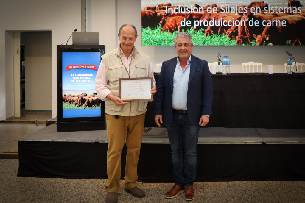 El reconocimiento se realizó durante una de las actividades centrales de las Jornadas Ganaderas, en presencia de su familia, colegas y amigos, quienes acompañaron con emoción este homenaje.
