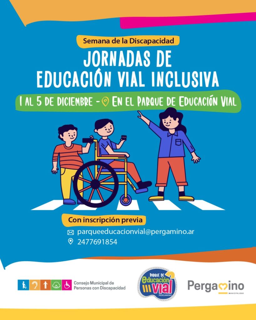 En el marco de la Semana de la Discapacidad, el Parque de Educación Vial de Pergamino junto al Consejo Municipal de Personas con Discapacidad, llevarán a cabo jornadas de Educación Vial Inclusiva. Estas experiencias diseñadas para proporcionar herramientas de autonomía y seguridad a niños y adolescentes con discapacidad, se realizarán del 1 al 5 de diciembre con inscripción previa.