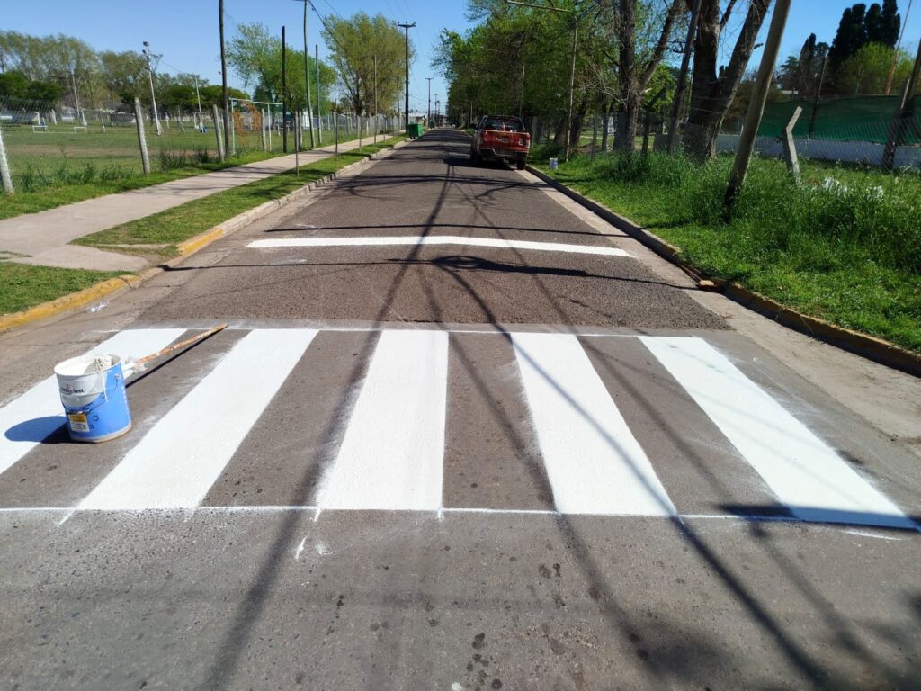 Además, se ejecutaron trabajos de demarcación horizontal en sectores destinados a colectivos urbanos e interurbanos, zonas de ascenso y descenso de pasajeros, reductores de velocidad, estacionamientos de motos, canteros y rotondas.