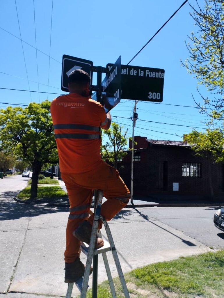 En paralelo, el municipio avanza con la colocación de 190 nuevos carteles nomencladores con nombres de calles, alturas y flechas que indican el sentido de circulación.