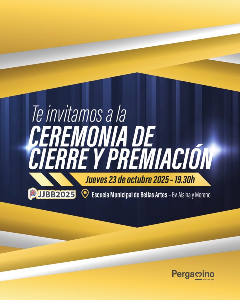 Mañana, desde las 19.30 horas, la Municipalidad de Pergamino llevará a cabo la Ceremonia de Cierre y Premiación de los Juegos Bonaerenses 2025, en la Escuela Municipal de Bellas Artes (Alsina y Moreno)