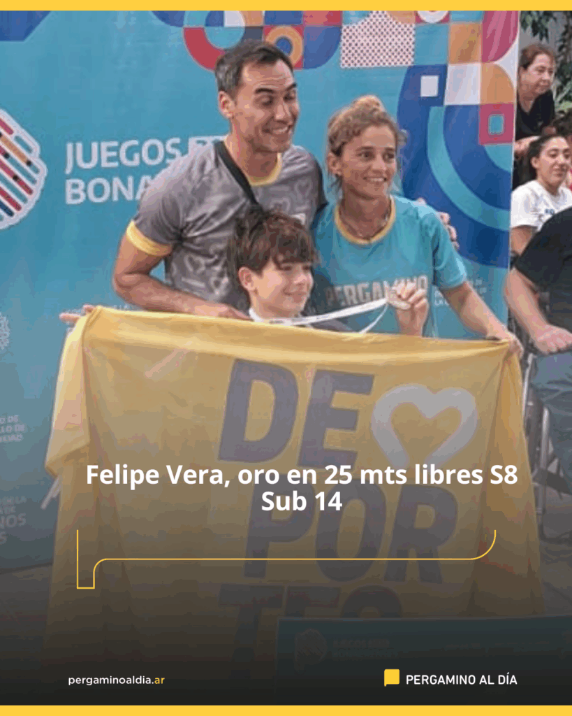 Felipe Vera se consagró campeón en la prueba de 25 metros libres, categoría S8 Sub 14. Una actuación brillante que lo llevó a lo más alto del podio y suma una nueva alegría para Pergamino.