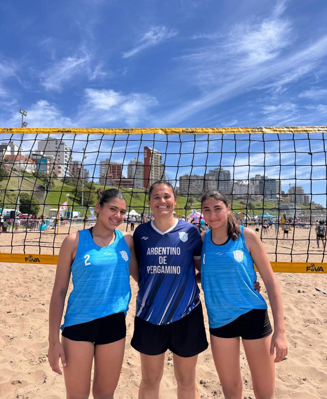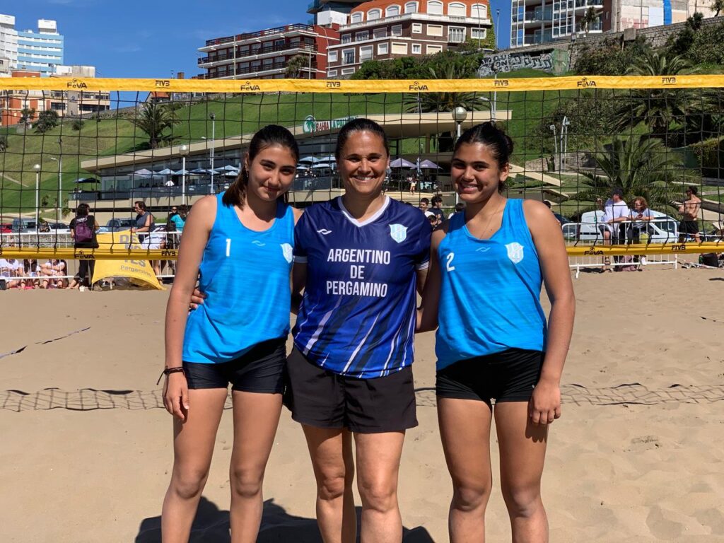 Voley Playero femenino Sub 14, las chicas del Club Argentino se impusieron frente a Alem por 21-15 y 21-19
